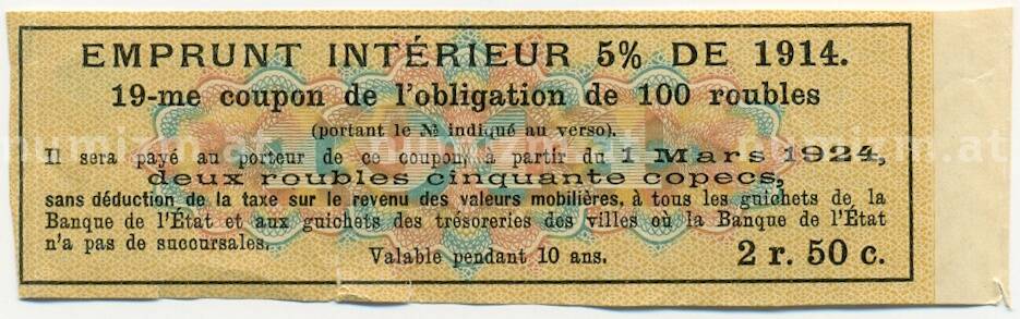 Купон от облигации 100 рублей 1914 года «Внутренний заем» (Артикул: T11-30287): подробные характеристики, качественные фотографии в высоком разрешении, низкая цена.