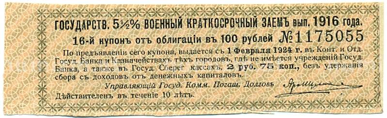Купон от облигации 100 рублей 1916 года «Государственный военный краткосрочный заем» (Артикул: T11-30301): подробные характеристики, качественные фотографии в высоком разрешении, низкая цена.