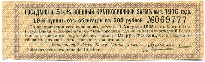 Купон от облигации 500 рублей 1916 года «Государственный военный краткосрочный заем» (Артикул: T11-30337): подробные характеристики, качественные фотографии в высоком разрешении, низкая цена.