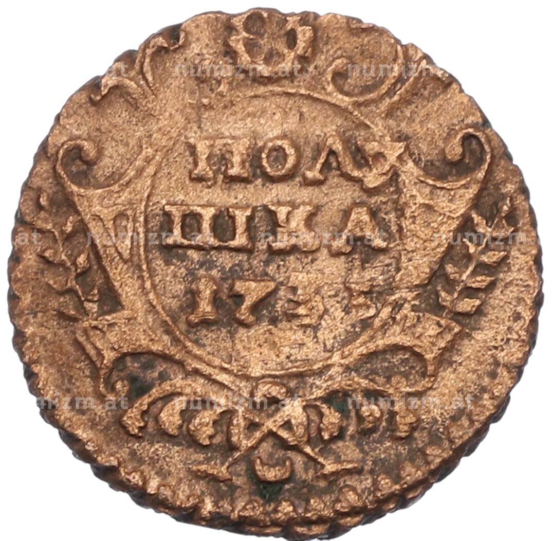 Купить Полушка 1735 года по привлекательной цене можно в нашем интернет-магазине — Вам достаточно оформить заказ на сайте. Все монеты, представленные в каталоге, находятся в наличии на нашем складе.
