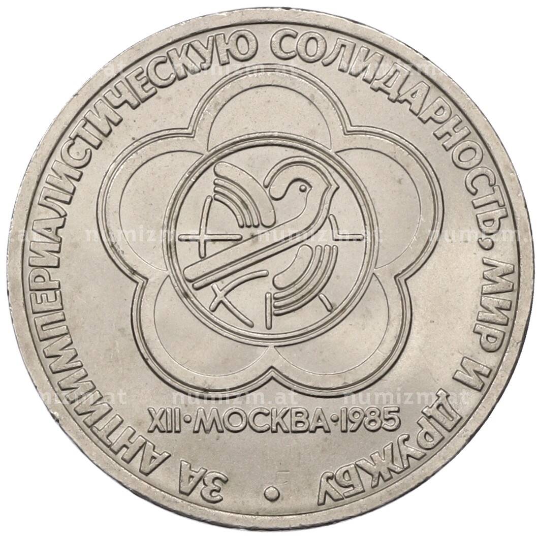 Купить 1 рубль 1985 года «XII Международный фестиваль молодежи и студентов в Москве» по привлекательной цене можно в нашем интернет-магазине — Вам достаточно оформить заказ на сайте. Все монеты, представленные в каталоге, находятся в наличии на нашем складе.