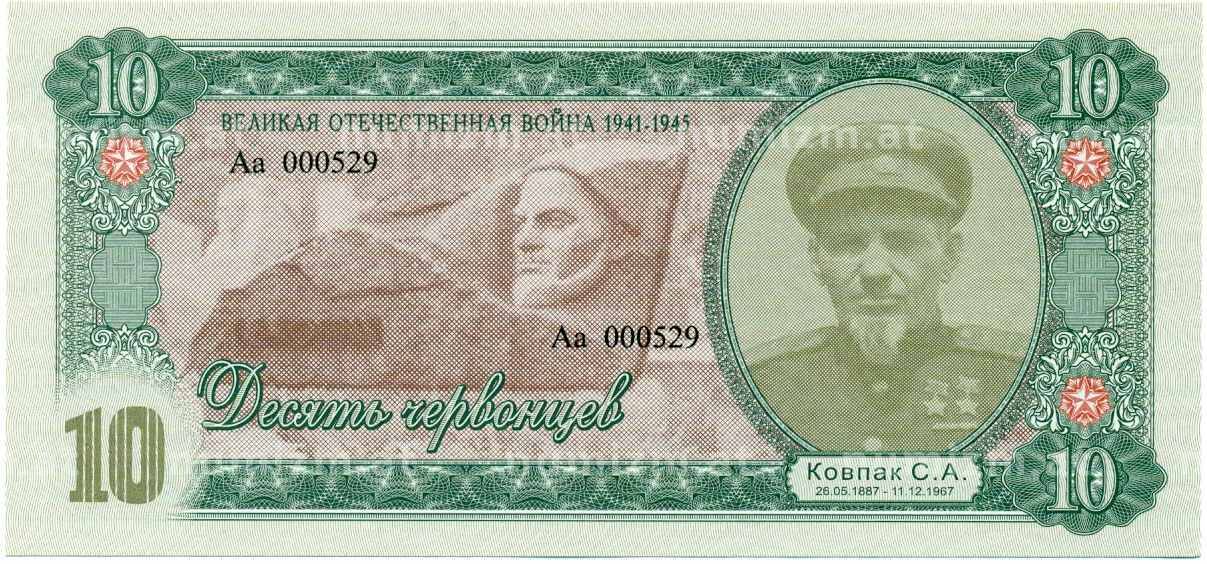 20.01.2025Интернет магазин «Нумизмат» предлагает приобрести 10 червонцев 2015 года «Клуб бонистов ВОВ — Ковпак» (Unusual).