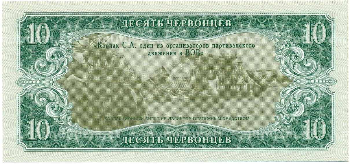 Купить 10 червонцев 2015 года «Клуб бонистов ВОВ — Ковпак» (Unusual) по привлекательной цене можно в нашем интернет-магазине — Вам достаточно оформить заказ на сайте. Все монеты, представленные в каталоге, находятся в наличии на нашем складе.