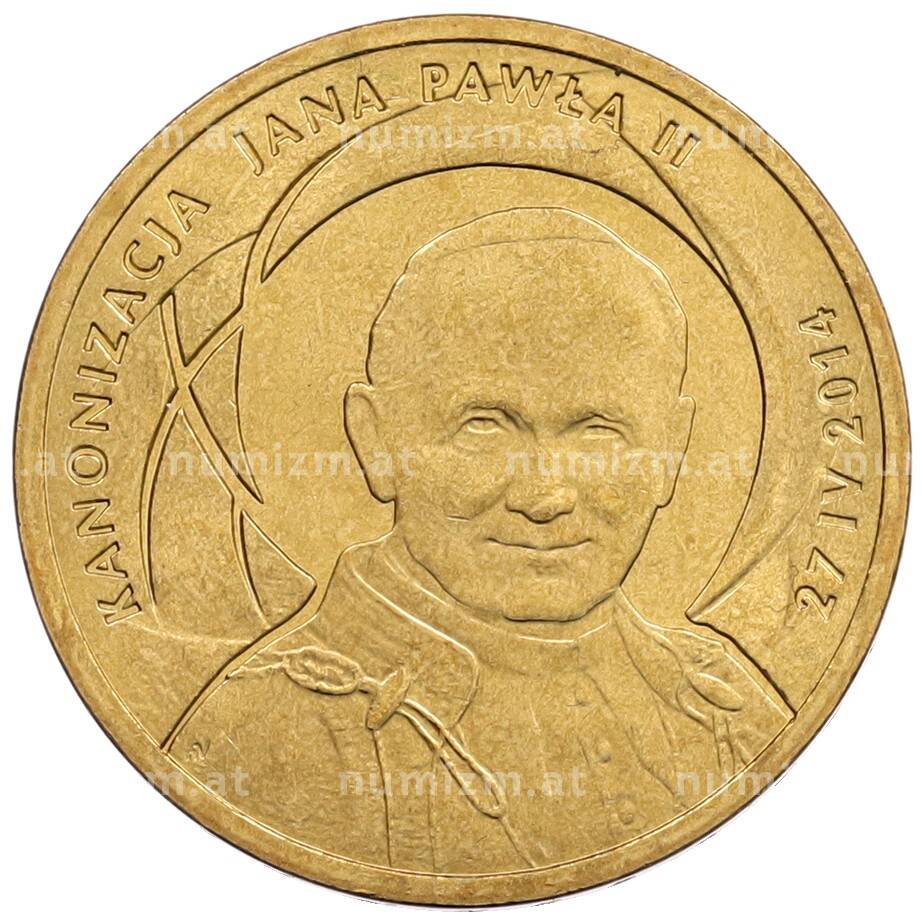 Купить 2 злотых 2014 года Польша «Канонизация Иоанна Павла II — 27 апреля 2014» по привлекательной цене можно в нашем интернет-магазине — Вам достаточно оформить заказ на сайте. Все монеты, представленные в каталоге, находятся в наличии на нашем складе.