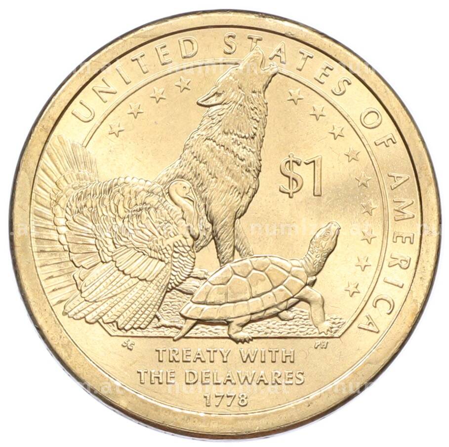 Купить 1 доллар 2013 года (P) США «Коренные американцы (Сакагавея) — Договор с Делаварами» по привлекательной цене можно в нашем интернет-магазине — Вам достаточно оформить заказ на сайте. Все монеты, представленные в каталоге, находятся в наличии на нашем складе.