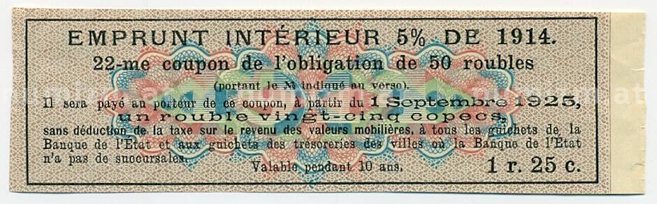 Купон от облигации 50 рублей 1914 года «Государственный военный краткосрочный заем» (Артикул: T11-31661): подробные характеристики, качественные фотографии в высоком разрешении, низкая цена.