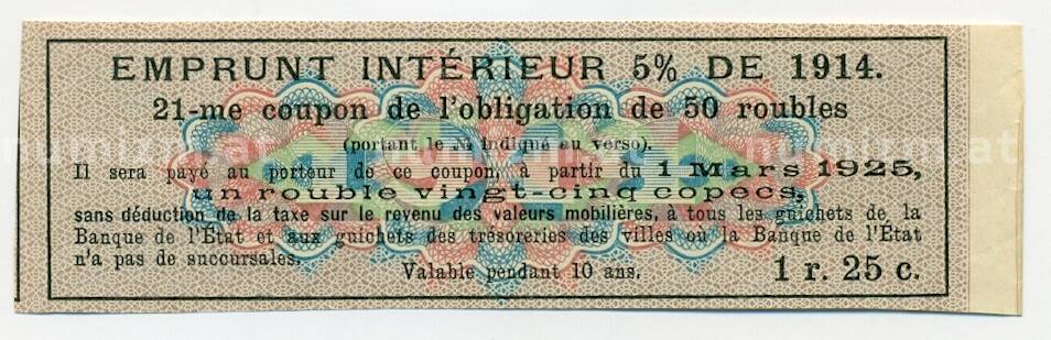 Купить Купон от облигации 50 рублей 1914 года «Государственный военный краткосрочный заем» по привлекательной цене можно в нашем интернет-магазине — Вам достаточно оформить заказ на сайте. Все монеты, представленные в каталоге, находятся в наличии на нашем складе.