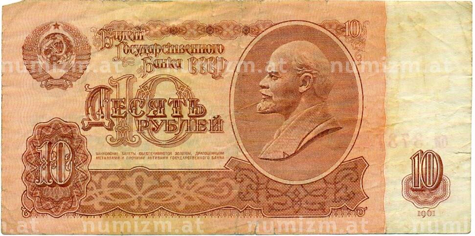 Банкнота 10 рублей 1961 года (Артикул: T11-32035): подробные характеристики, качественные фотографии в высоком разрешении, низкая цена.