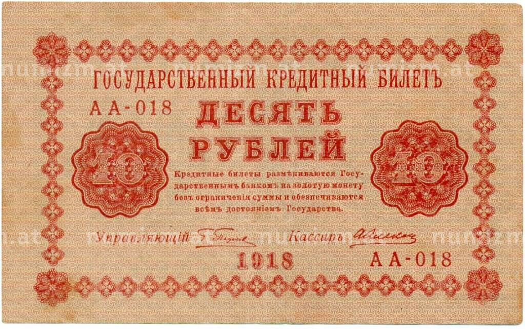20.01.2025Интернет магазин «Нумизмат» предлагает приобрести 10 рублей 1918 года.