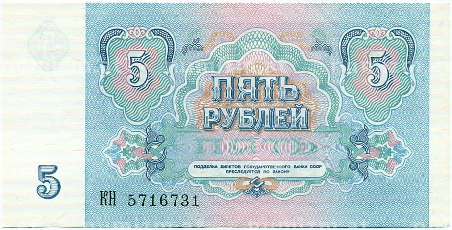 Банкнота 5 рублей 1991 года (Артикул: T11-32591): подробные характеристики, качественные фотографии в высоком разрешении, низкая цена.