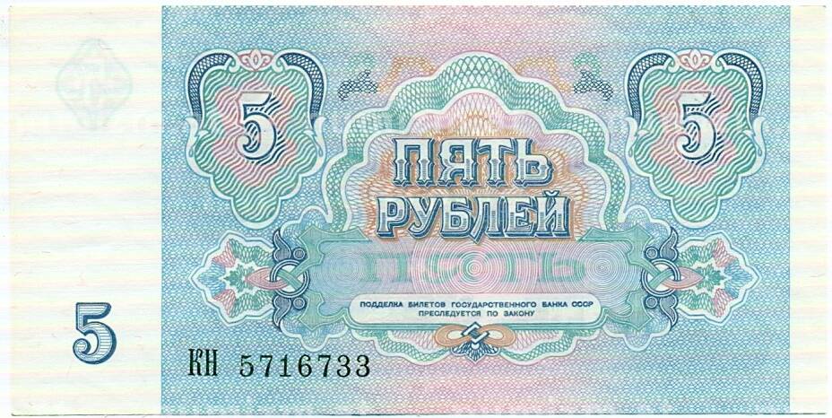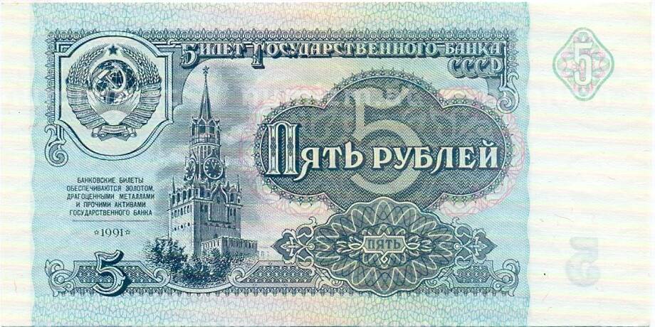 Банкнота 5 рублей 1991 года [Артикул: T11-32593]