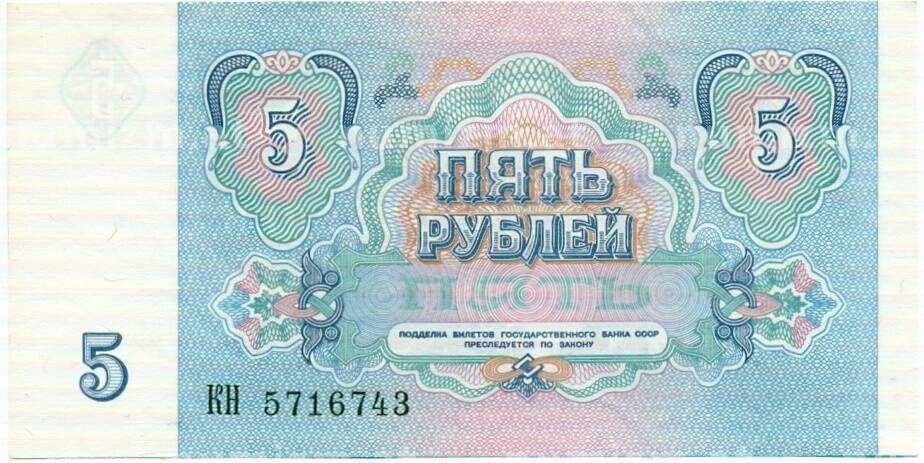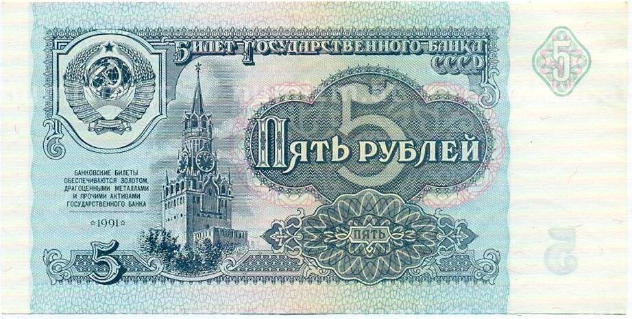 Банкнота 5 рублей 1991 года [Артикул: T11-32602]