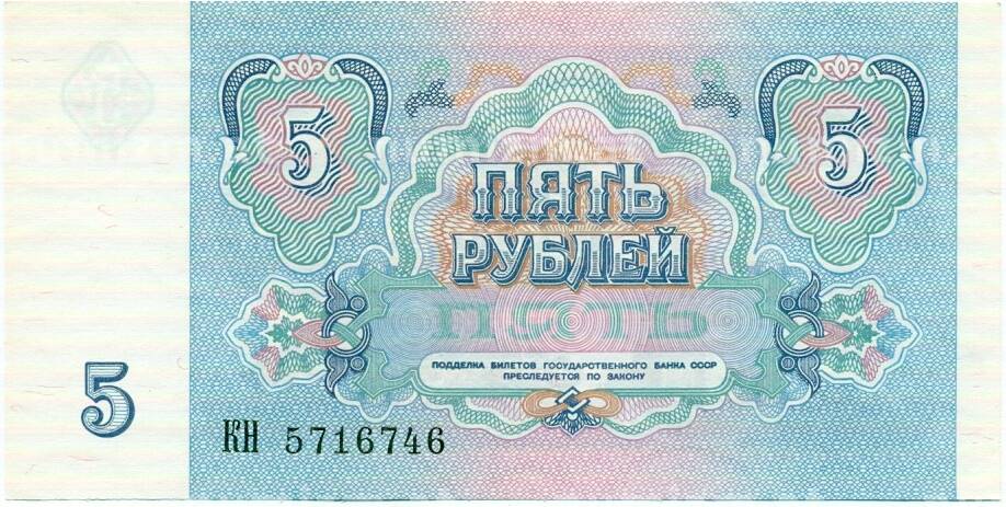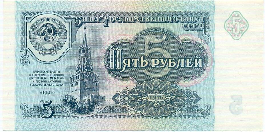 Банкнота 5 рублей 1991 года [Артикул: T11-32605]