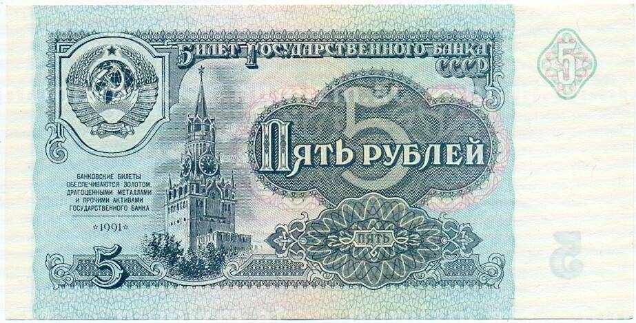 Банкнота 5 рублей 1991 года [Артикул: T11-32611]