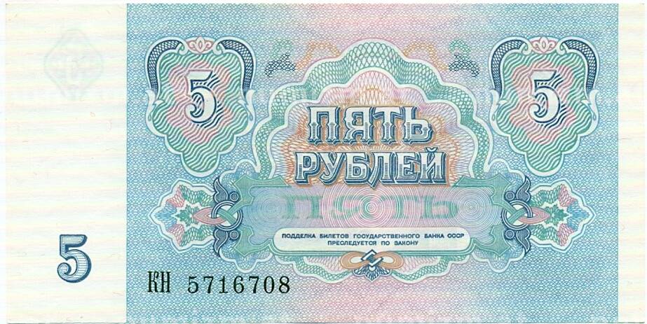Банкнота 5 рублей 1991 года (Артикул: T11-32611): подробные характеристики, качественные фотографии в высоком разрешении, низкая цена.