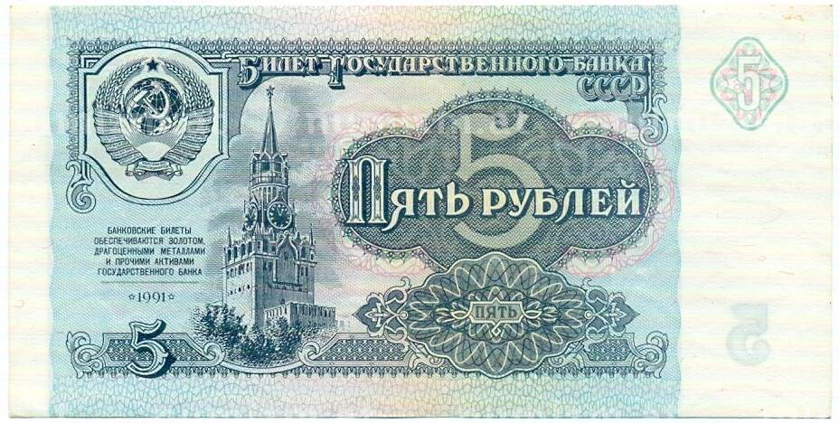 Банкнота 5 рублей 1991 года [Артикул: T11-32616]