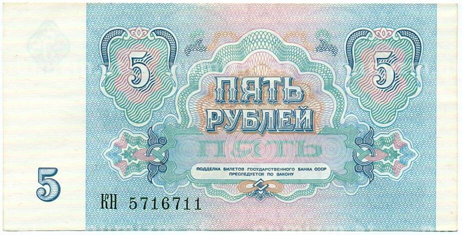 Банкнота 5 рублей 1991 года (Артикул: T11-32616): подробные характеристики, качественные фотографии в высоком разрешении, низкая цена.