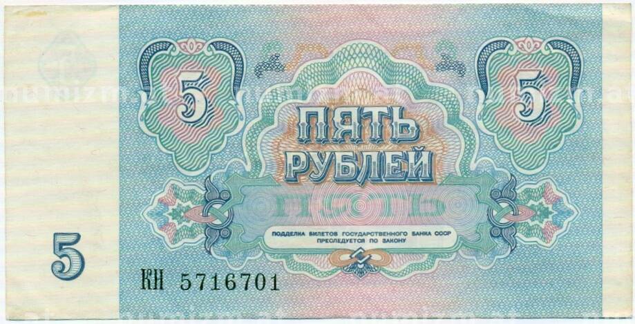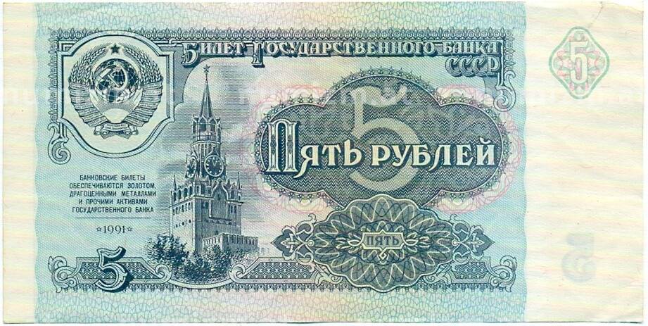 Банкнота 5 рублей 1991 года [Артикул: T11-32617]