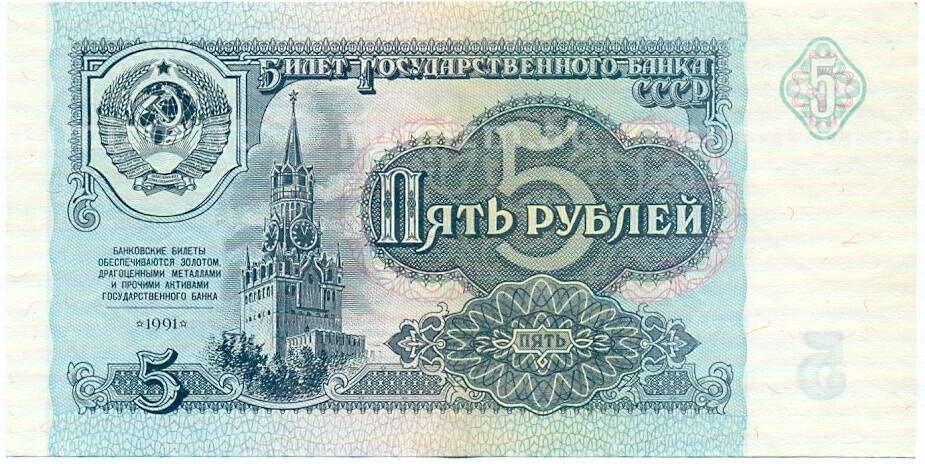 Банкнота 5 рублей 1991 года [Артикул: T11-32619]