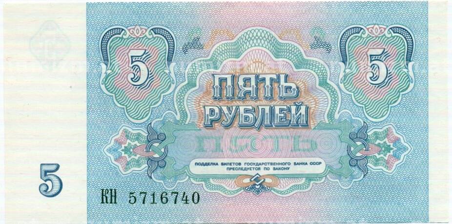 Банкнота 5 рублей 1991 года (Артикул: T11-32619): подробные характеристики, качественные фотографии в высоком разрешении, низкая цена.