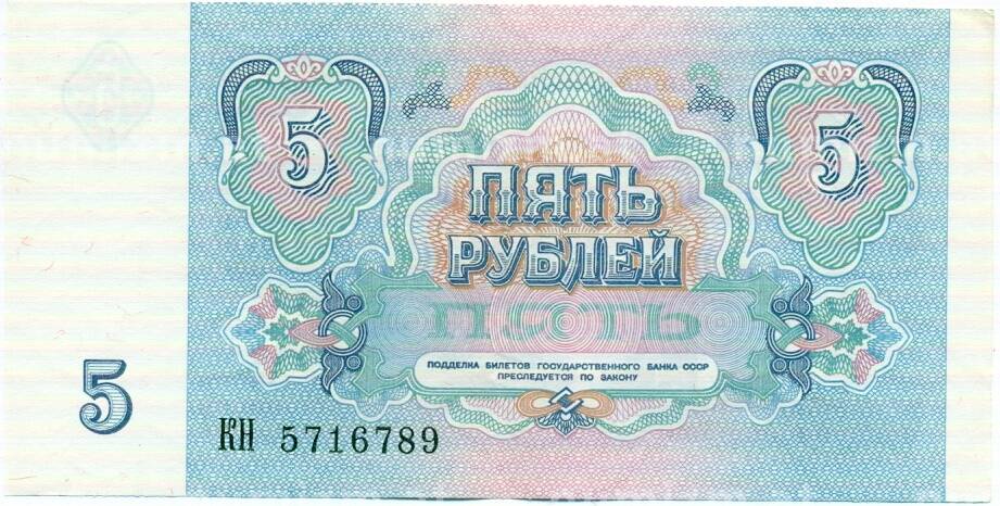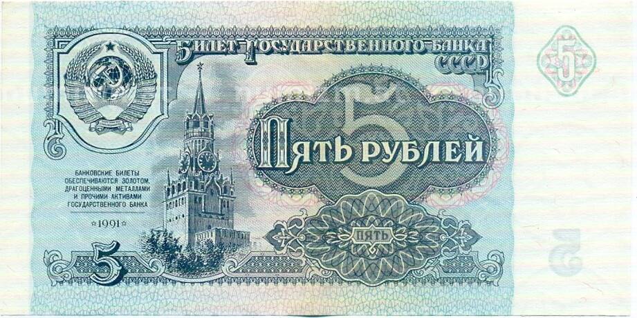 Банкнота 5 рублей 1991 года [Артикул: T11-32620]