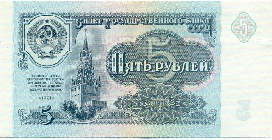 Банкнота 5 рублей 1991 года [Артикул: T11-32624]