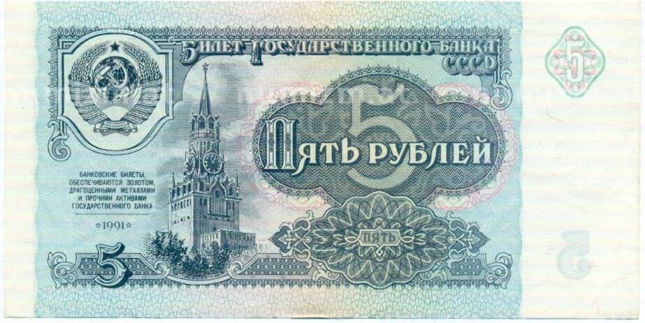 Банкнота 5 рублей 1991 года [Артикул: T11-32628]