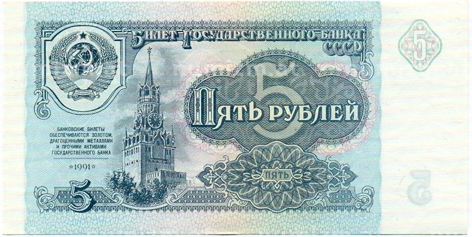 Банкнота 5 рублей 1991 года [Артикул: T11-32630]