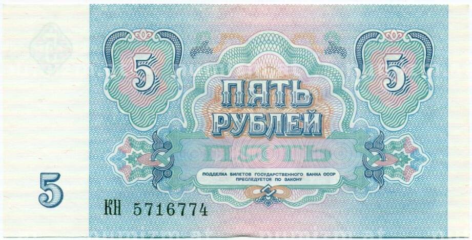 Банкнота 5 рублей 1991 года (Артикул: T11-32630): подробные характеристики, качественные фотографии в высоком разрешении, низкая цена.