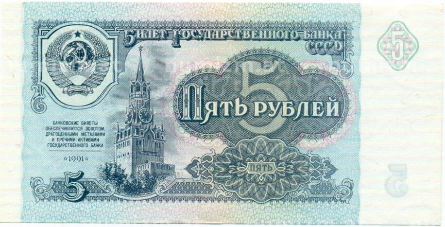 Банкнота 5 рублей 1991 года [Артикул: T11-32631]