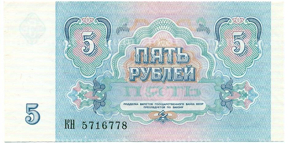 Банкнота 5 рублей 1991 года [Артикул: T11-32634]