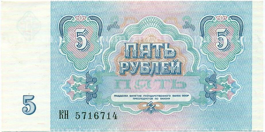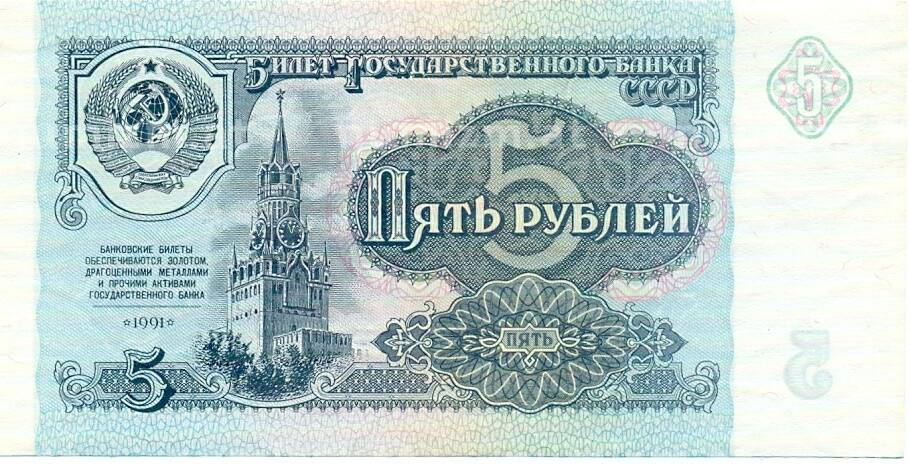 Банкнота 5 рублей 1991 года [Артикул: T11-32637]