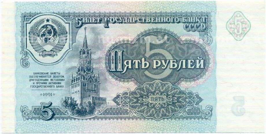 Банкнота 5 рублей 1991 года [Артикул: T11-32640]