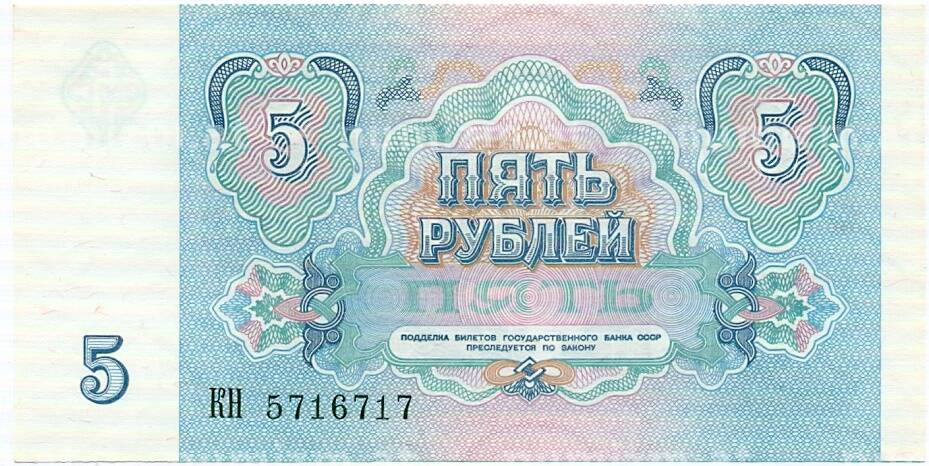 Банкнота 5 рублей 1991 года (Артикул: T11-32640): подробные характеристики, качественные фотографии в высоком разрешении, низкая цена.