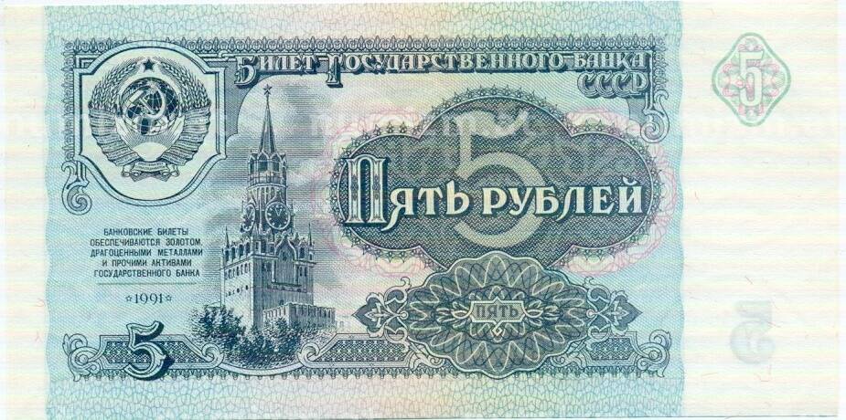 Банкнота 5 рублей 1991 года [Артикул: T11-32641]