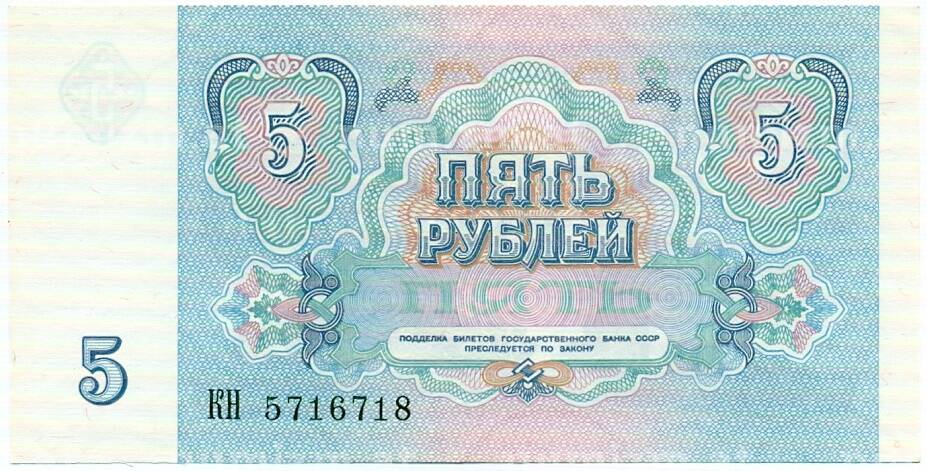 Банкнота 5 рублей 1991 года (Артикул: T11-32641): подробные характеристики, качественные фотографии в высоком разрешении, низкая цена.