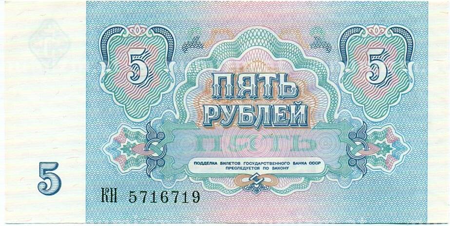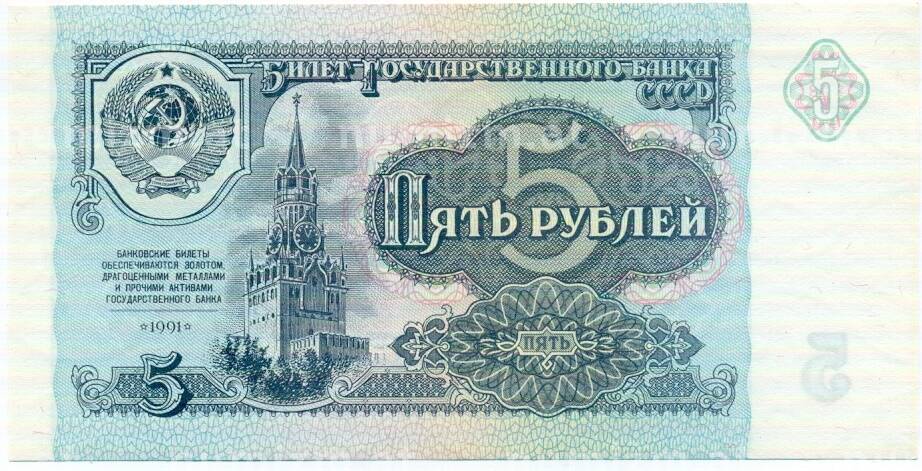 Банкнота 5 рублей 1991 года (Артикул: T11-32642): подробные характеристики, качественные фотографии в высоком разрешении, низкая цена.