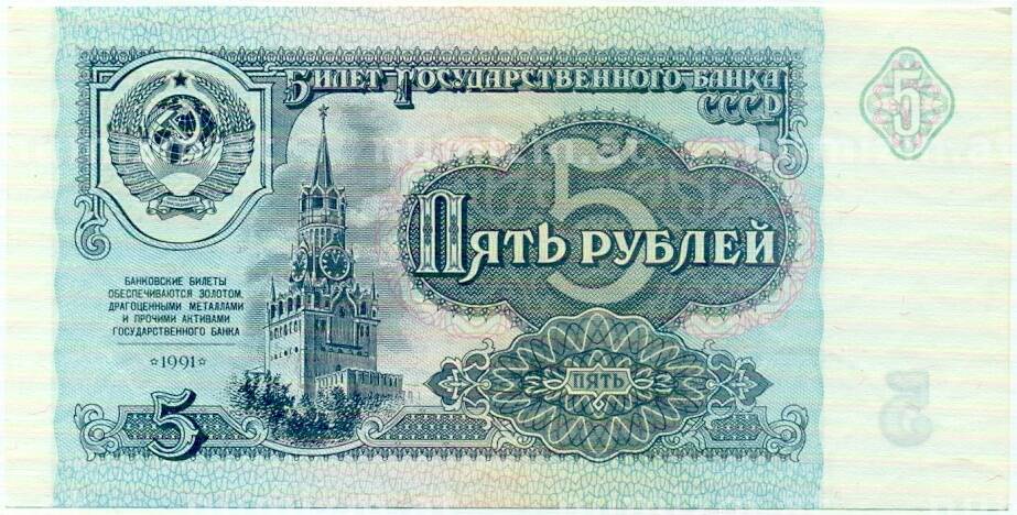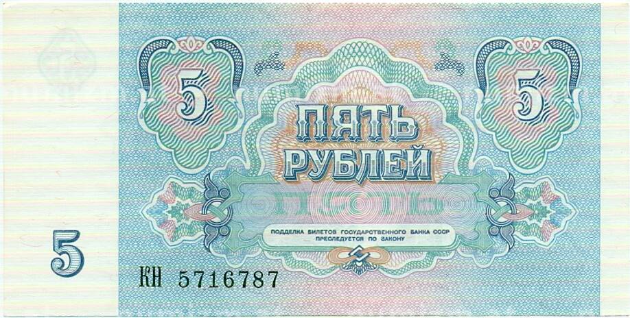 Банкнота 5 рублей 1991 года [Артикул: T11-32652]