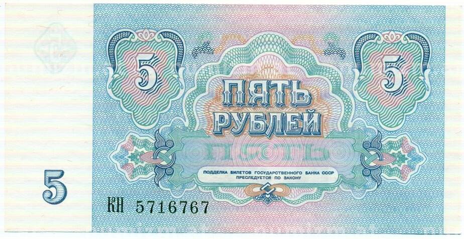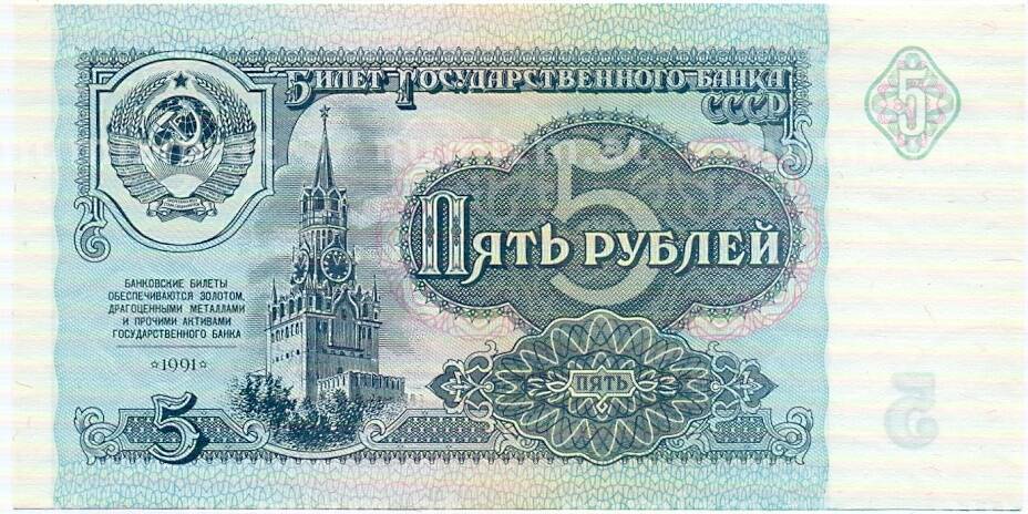 Банкнота 5 рублей 1991 года [Артикул: T11-32659]