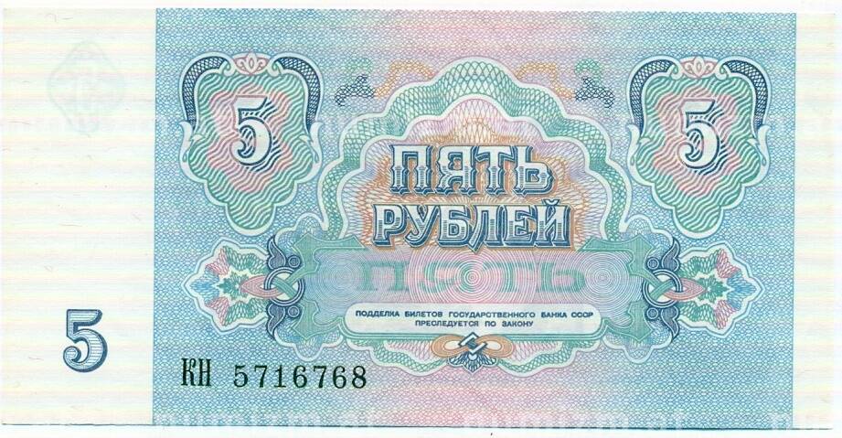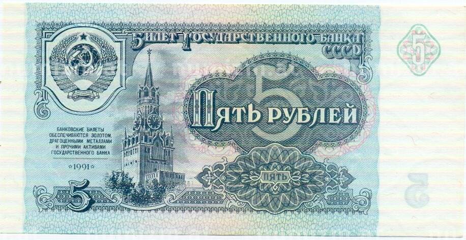 Банкнота 5 рублей 1991 года [Артикул: T11-32660]