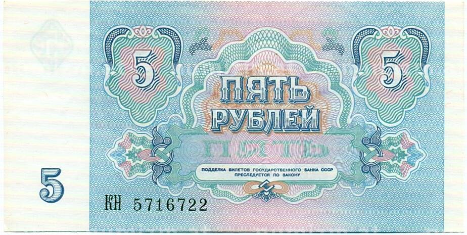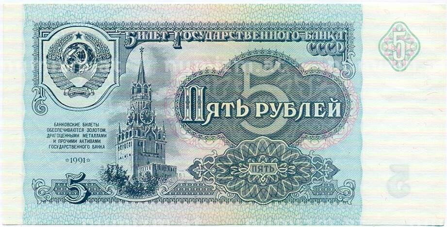 Банкнота 5 рублей 1991 года [Артикул: T11-32663]