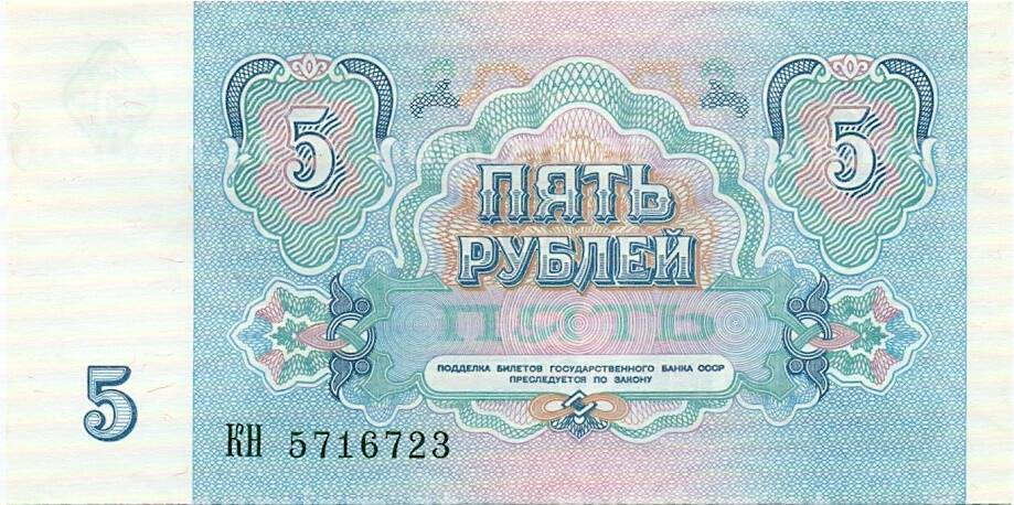 Банкнота 5 рублей 1991 года [Артикул: T11-32664]