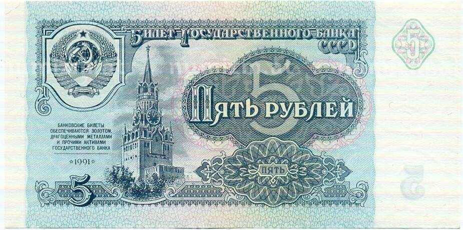 Банкнота 5 рублей 1991 года [Артикул: T11-32669]