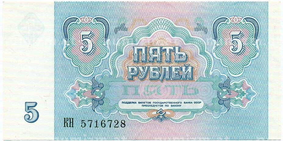 Банкнота 5 рублей 1991 года [Артикул: T11-32670]
