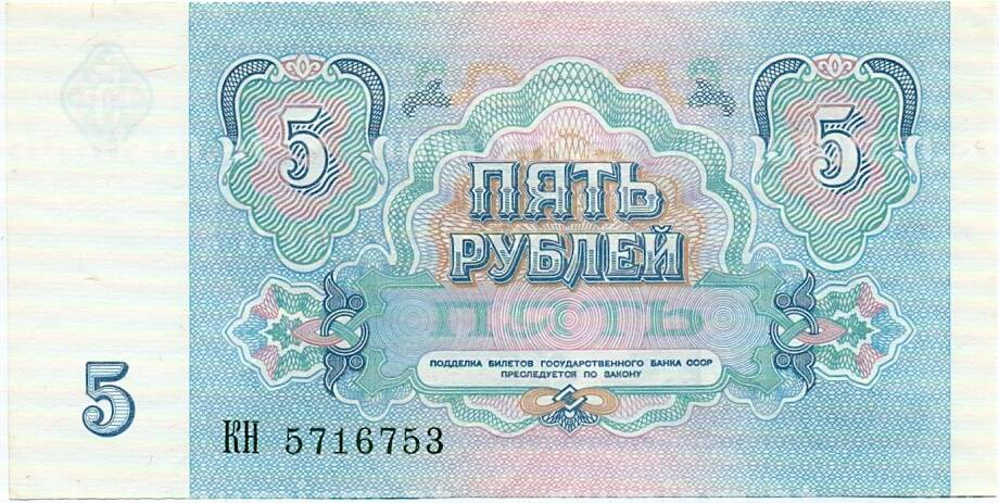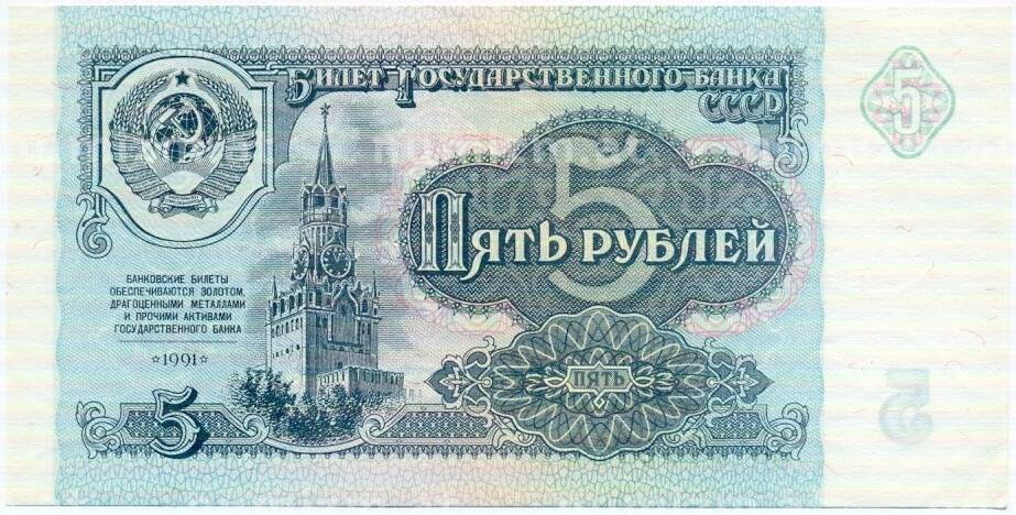 Банкнота 5 рублей 1991 года [Артикул: T11-32674]