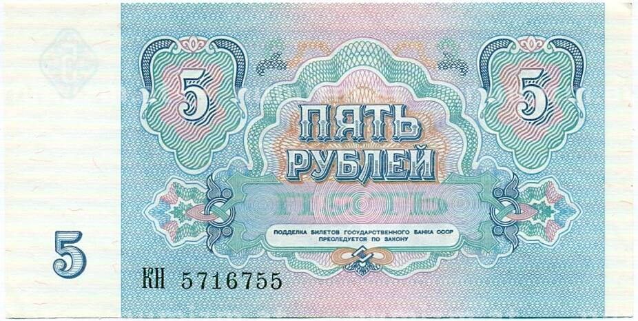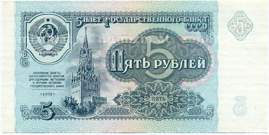 Банкнота 5 рублей 1991 года [Артикул: T11-32675]