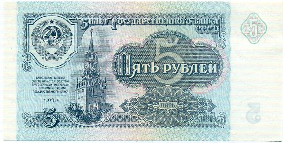 Банкнота 5 рублей 1991 года [Артикул: T11-32678]