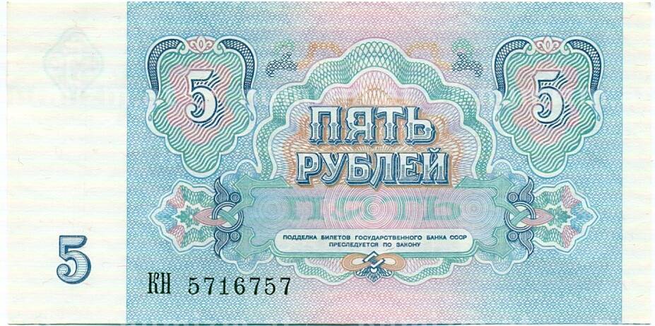 Банкнота 5 рублей 1991 года (Артикул: T11-32678): подробные характеристики, качественные фотографии в высоком разрешении, низкая цена.