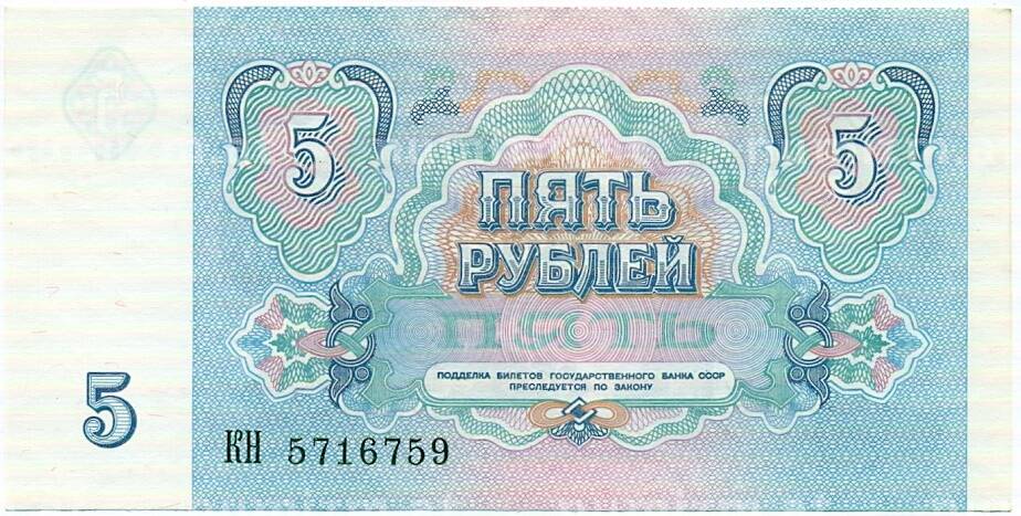 Банкнота 5 рублей 1991 года [Артикул: T11-32680]