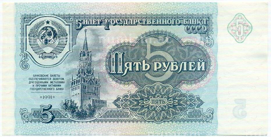 Банкнота 5 рублей 1991 года (Артикул: T11-32684): подробные характеристики, качественные фотографии в высоком разрешении, низкая цена.